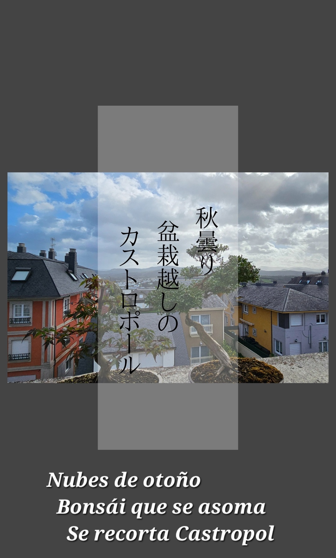 秋曇り 盆栽越しの カストロポール